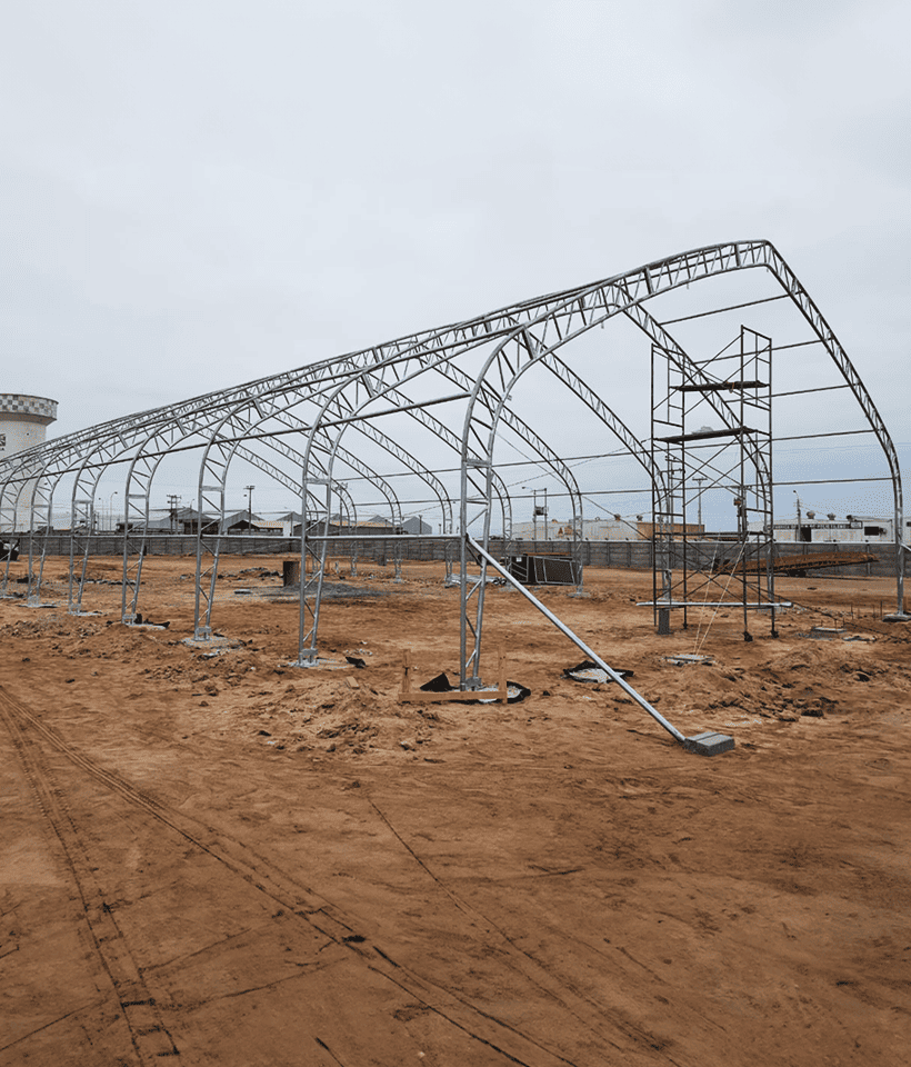 Instalada con pernos de anclaje sobre poyos de hormigón